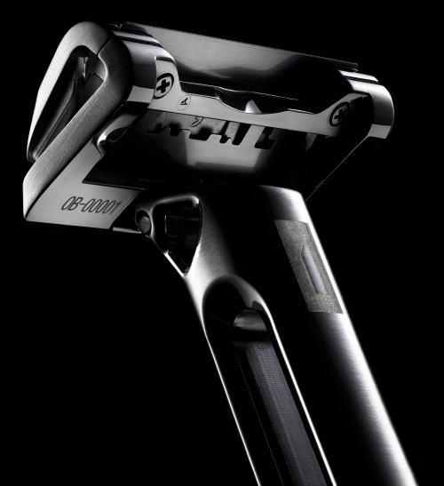 Das Gerät ist aus glänzendem Stahl und hochpräzise gefertigt. Es hat keinen Motor, keinen Chip und keine Batterie. Entfernt ähnelt es einem Rasierer, aber es hat kein Plastik und ist schwer wie eine Smith & Wesson. Es hat einen Griff und einen beweglich gelagerten Kopf mit einem Schlitz darin.