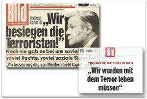 Wären da nur nicht diese großen blinden Flecken. Und dazu der raunende Satz des greisen Helmut Schmidt. In einem Interview hatte er gesagt: „Am Ende ist es gleichgültig, mit welcher Art von Terroristen wir es zu tun haben. Ob RAF, Araber, Nazis: Sie nehmen sich wenig in ihrer Menschenverachtung. Übertroffen werden sie nur von bestimmten Formen des Staatsterrorismus.“