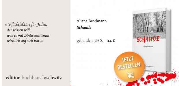 Aliana Brodmann, Schande. Roman. Edition Buchhaus Loschwitz, Hardcover mit Schutzumschlag, 368 Seiten, 24,00 €.