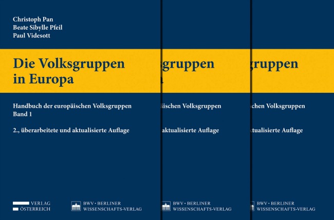 Christoph Pan, Beate Sibylle Pfeil, Paul Videsott : Die Volksgruppen in Europa, Wien (Verlag Österreich) / Berlin (BWV- Berliner Wissenschafts-Verlag) ²2016; XLIX, 477 Seiten, zahlr. Illustrationen; gebunden; 88,– €