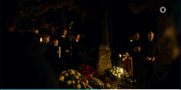 Dann die nächtliche Nazi-Sonnenwende-Beerdigung auf der Ahnenstätte Irminsul: Es geht kaum dicker, Nazi-Kitsch pur. Aber dick muss hir wohl aufgetragen werden, denn jetzt werden dem Kommissar die Augen geöffnet: Doch nichts mit Tradition des Bäuerlichen, sondern alle Tradition nur mehr flüchtlingsfeindlicher Nazikram.