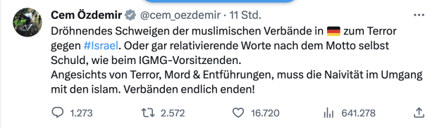 Das Echo des Hamas-Überfalls in Deutschland und Europa behandelten zahlreiche Medien nur am Rand – oder gar nicht. Beispielsweise das dröhnende Schweigen des Zentralrats der Muslime, der sich auch am Sonntag nicht zu der allerkleinsten Solidaritätserklärung für Israel aufraffte. Immerhin verurteilte der Grünen-Politiker Cem Özdemir dieses fast schon an Zustimmung grenzende Verhalten ohne Wenn und Aber.