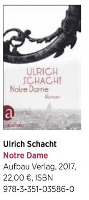 Bisher ist Ulrich Schacht als Essayist und Lyriker hervorgetreten sowie als Mitherausgeber der „Selbstbewussten Nation“ um Botho Strauß’ umstrittenen „Bocksgesang“-Essay. „Notre Dame“ ist sein Debüt als Romanautor, und zwar eines, der die Bobachtungs-Lust und die Wort-Lust und die Gedankentiefe des Lyrikers nie vergessen lässt. Das hier ist insofern ein Actionroman, als es die Action zweier Herzen ist, ein Lolita-Feuer, ein Mignon-Roman, der den Älteren um seinen Verstand bringt.