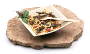 „Nehmen wir zum Beispiel einen Teller mit Vollkornspaghetti, denen Insekten beigemischt wurden, darüber eine geschnittene Tomate und ein bisschen Pfeffer, dazu noch etwas Butter (aber Vorsicht: Cholesterinspiegel beachten). Dann hätte man ein vitamin- und ballaststoffreiches und mit Protein versetztes Gericht.“