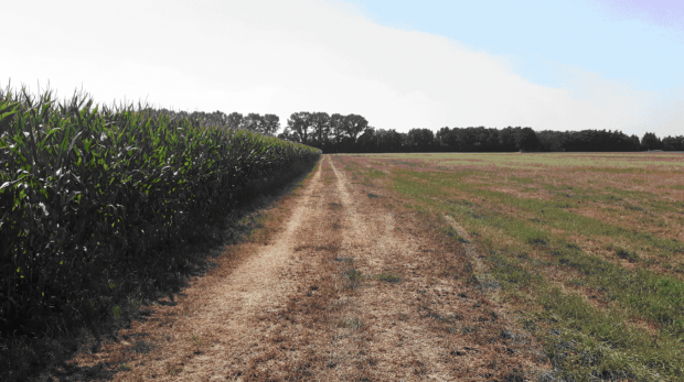 Das folgende Foto (unten) zeigt einen Ausschnitt aus einem Naturschutzgebiet. Der Boden ist auf dem gesamten Foto derselbe. Anmoorig, mit relativ hohem Grundwasserstand (ca. in 2 m Tiefe). Links ist ein Maisacker zu sehen. Es besteht Bestandsschutz, naturschutzrechtliche Einschränkungen dürfen nicht angewandt werden. Obwohl es hier drei Monate lang nicht mehr geregnet hat, befindet sich der Mais in einem hervorragenden Zustand. Ertragserwartung: 120% vom Durchschnitt.