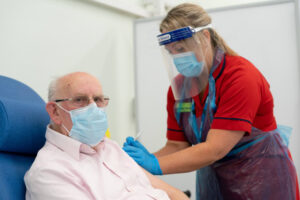Das Gesundheitsministerium/NHS rate davon ab Allergiker zu impfen, und da dürfte es einige geben.