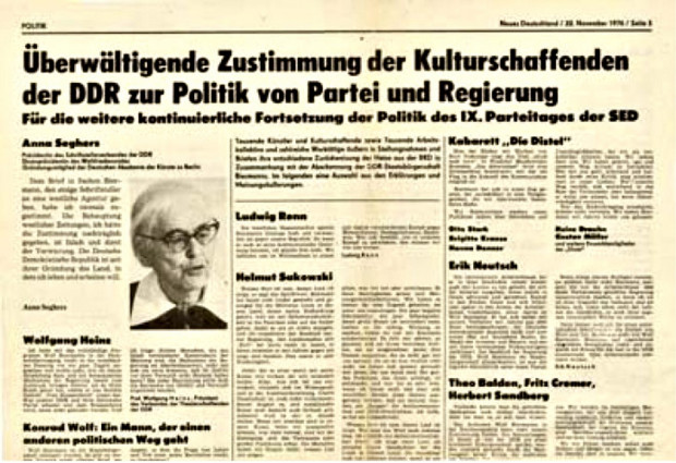 Einige Senioren erinnern sich vielleicht noch daran. Aber Ostdeutschen älterer Jahrgänge dürfte der Begriff erst Recht bekannt vorkommen, sogar vertraut, nämlich von der überwältigenden Zustimmung der DDR-Kulturschaffenden zur Biermann-Ausbürgerung 1976.