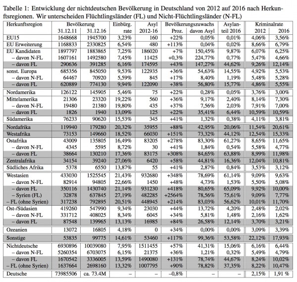 “ Unter diesen Gesichtspunkten ist zu erwarten, dass diese Personen ein wesentlich höheres Gewaltpotential haben als Deutsche und daher sind auch die wesentlich höheren Werte bei Rohheits- und Gewaltdelikten nicht erstaunlich.“