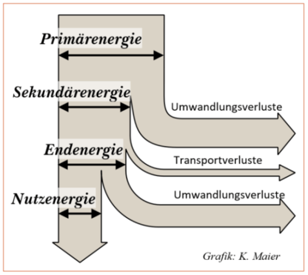 Mit der Höhe der Verluste, die aus den Wirkungsgraden der Energiewandlungen resultieren, sind Kostenkomponenten verbunden, die in die Endpreise eingehen. Je geringer die Verluste, d.h. desto besser die Wirkungsgradkette ist, umso effektiver wird die Primärenergie genutzt und umso kostengünstiger ist die Endenergie vor deren Nutzung. Eine zentrale Voraussetzung für eine effizient funktionierende Marktwirtschaft ist die orts-, mengen- und zeitgenaue, also bedarfsgerechte Bereitstellung von Endenergie. Dazu sind geeignete Speicher- und Transportkonzepte nötig. So wird z.B. der Strom genau in der gewünschten Menge zur gewünschten Zeit über das Stromnetz dorthin geliefert, wo er gebraucht wird. Oder der Motor im PKW bekommt aus dem Energiespeicher Kraftstofftank (für bis zu 800 km) jederzeit so viel (End-)Energie, wie er benötigt, um sie in die aktuell gewünschte Nutzenergie (Traktion) zu wandeln.