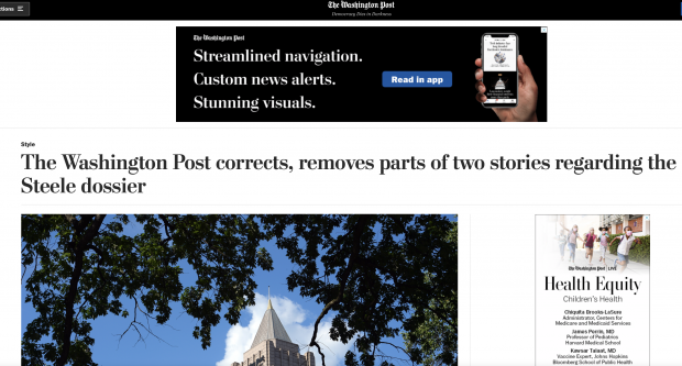 Es war eine verhältnismäßig bescheidene Notiz in der Washington Post, die am 12. November eine Serie großer und prominenter Geschichten beendete: “The Washington Post”, heißt es dort, “unternahm am Freitag den ungewöhnlichen Schritt, große Teile von zwei ihrer Artikel, veröffentlicht im März 2017 und im Februar 2019, zu korrigieren und zu entfernen, die einen belarussisch-amerikanischen Geschäftsmann als Schlüsselquelle des ‚Steele Dossier‘ identifizieren, eine Sammlung von größtenteils unbestätigten Berichten, die behaupteten, die russische Regierung besitze kompromittierendes Material über den damaligen Präsidentschaftskandidaten Donald Trump.”