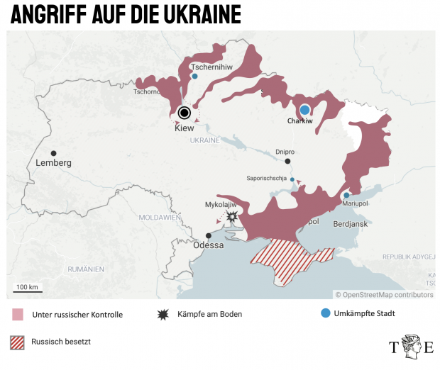 Odessa ist für die Ukraine von existenzieller Bedeutung – rund 60 Prozent des Handels des Landes werden über den Hafen der Stadt abgewickelt. Mit einem langfristig russisch kontrollierten Odessa wäre die ukrainische Wirtschaft am Ende. Russland könnte mit der Eroberung der Stadt außerdem eine Landverbindung zur ebenfalls russisch gestützten Separatistenrepublik Transnistrien im östlichen Moldau herstellen. Kämpfe hier stehen wohl unmittelbar bevor. Allerdings gelingt es Russland seit Tagen nicht, bei Mykolajiw Fortschritte zu erzielen.