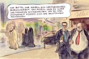 Und natürlich könnte dieser ganze Quatsch mit Vollverschleierung im öffentlichen Bereich verboten werden, aber der politische Wille fehlt und ganz besonders unter Jamaika.