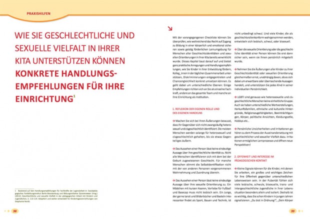 Beispiel 2: Wie wenn Berlin keine anderen Probleme hätte, werden dort jetzt bereits Kindergarten und Kitas auf „Gender“ getrimmt. Soeben ist eine 140 Seiten starke Handreichung bekanntgeworden. Ihr Titel lautet: „Murat spielt Prinzessin, Alex hat zwei Mütter und Sophie heißt jetzt Ben“. Der Untertitel verrät noch etwas mehr, wohin der Hase laufen soll: „Sexuelle und geschlechtliche Vielfalt als Themen frühkindlicher Inklusionspädagogik – Handreichung für pädagogische Fachkräfte der Kindertagesbetreuung.“ Verantwortlich zeichnen dafür neben der Schulsenatorin unter anderen „QUEERFORMAT“. Und was findet sich auf diesen 140 Seiten?