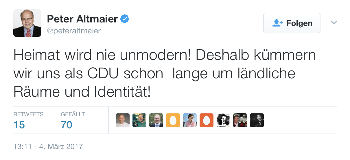 Er sagt doch schlicht, dass es Heimat nur auf dem Land gibt, Städter haben keine Heimat …