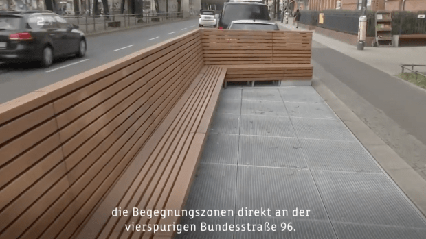Diese Sitzecken kannte ich bisher nur von Shopping Malls oder Plätzen. Politische Botschaft hier soll wohl sein: Wir wollen den Raum für den KFZ-Verkehr einengen/ begrenzen. In meiner Stadt werden seit längerer Zeit mit einem CDU OB nun unter der SPD ähnliche Projekte gestartet, z.B. https://www.wz.de/nrw/duesseldorf/neue-fahrradstaender-in-duesseldorf-stehen-auf-75-ehemaligen-parkplaetzen_aid-34878121
