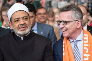37. Das Bild spricht Bände: De Maiziere will sich beim Obermufti anbiedern, doch dieser blicket strenge, weil der den dösigen Ungläubigen nicht für voll nimmt.