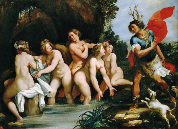 Die Erzählung über den dramatischen Tod Aktaions, deren bekannteste Version von Ovid stammt, faszinierte zahlreiche berühmte Maler. Der Sagenheld sucht während der Jagd einen ruhigen Platz zum Ausruhen und ertappt dabei versehentlich Artemis (bzw. in der römischen Mythologie Diana), die Göttin der Jungfräulichkeit, beim Baden. Beschämt darüber, von Aktaion nackt gesehen zu werden, verwandelt Artemis den unerwünschten Eindringling in einen Hirsch, der anschließend von seinen eigenen Jagdhunden zerfleischt wird.