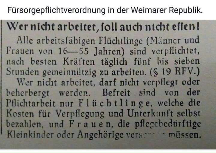 Da fällt mir ein (in diesem Zusammenhang), Flüchtlinge, die nach Russland kommen, müssen dort für ihren Unterhalt arbeiten gehen.