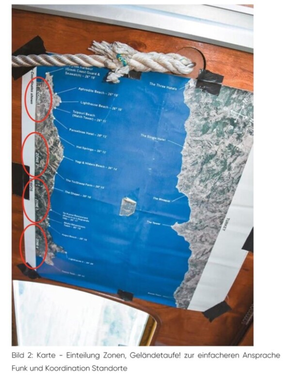 Wie organisiert man vorging zeigt Kartenmaterial, das bei der Durchsuchung von Mare Liberum von den griechischen Behörden beschlagnahmt wurde. Es zeigt Routen, Start- und Landepunkte zur besseren Koordination. Damit wird deutlich: Seenotrettung ist kein Einsatz zur Rettung Schiffbrüchiger, sondern ein organisierter Vorgang des Menschenschmuggels mit Begleitung durch die „Retter“ von Anfang an.