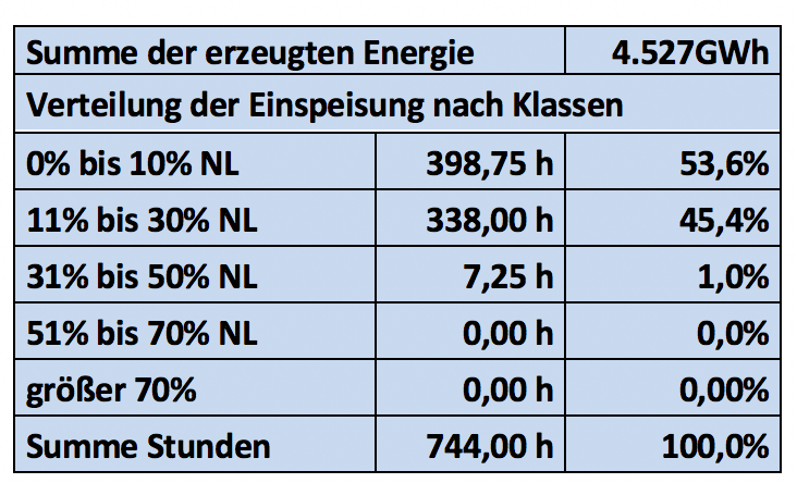 Eindrucksvoll auch die Verteilung der Einspeisung nach der Leistung: