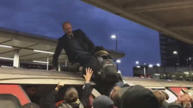 „Londoner, die wie jeden Wochentag zu ihrer Arbeit wollten, bewarfen, wie LBC berichtete, die Blockierer zuerst mit Sandwichs, dann zogen sie die Aktivisten vom Wagendach und verabreichten ihnen Schläge.“