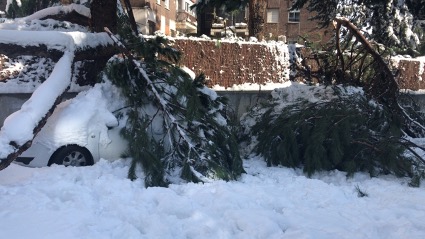 Die ganze Nacht zum Samstag schneite es durch und noch bis zum Nachmittag des gleichen Tages, dann kam Vater Frost. Teilweise sanken die Temperaturen nachts unter 10 Grad Minus in der Stadt. Heizungen fielen aus, Wasservorräte froren zu. Die historische Kälte soll noch bis kommenden Dienstag anhalten. Trotz herrlichstem Sonnenschein hat sich deswegen die Winterlandschaft in Madrid kaum verändert. Noch immer fallen Äste unter der Last des Schnees herunter, Teile von Dächern, Autos springen nicht an und in vielen Häusern ist es feucht geworden.