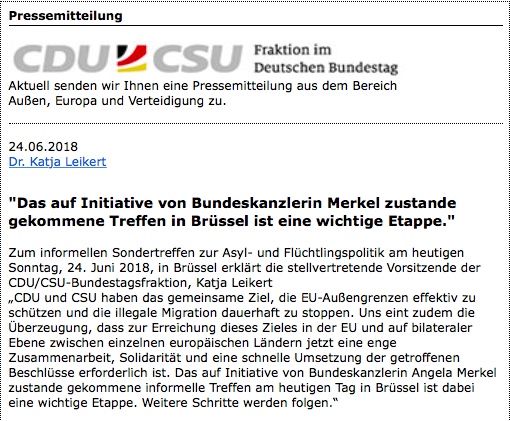 Ich gestehe, dass mich die Geschwindigkeit, mit der sich Staatsfunk und Hofberichterstattung gegen Mutti wenden, überrascht hat. Da ist ganz klar Blut im Wasser, und die Haie haben Witterung aufgenommen. Jetzt hat es die CSU in der Hand, die Weichen für Deutschland neu zu stellen. Vielleicht fühlen sich Seehofer und Söder ja ein wenig sicherer, jetzt da sie medial Rückendeckung erhalten. Eins steht fest, auch beim „Gipfel“ am Ende der Woche wird es keine „europäische Lösung“ für irgendwas geben, denn wäre so etwas möglich gäbe es die derzeitige Krise nicht.