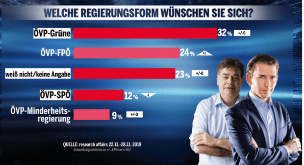 Zurück zur aktuellen Umfrage in Österreich. Sie fragte auch nach den gewünschten Koalitionen: