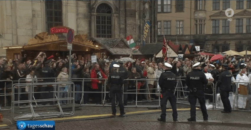 Der populistisch gestimmte Ministerpräsident Sachsens warnt ausgerechnet vor Populismus und man wird dabei den Gedanken nicht los, als warne er die da draußen lediglich davor, die unpopulären Entscheidungen der Berliner Regierung zu kritisieren. Hier und heute eine Einheit zu feiern jedenfalls gibt es für die geladenen Maßanzügler überhaupt keinen Grund. Schlimmer: Die Nachrichtensender der Öffentlich-Rechtlichen Fernsehanstalten überschlagen sich noch einmal in einer von Anbiederung, Verdrehung und Dummheit – nein: Frechheit! – kaum zu übertreffenden Berichterstattung. Da werden regierungskritische Demonstranten unisono als „aggressiv“ oder „gewaltbereit“ denunziert, gerade so, als würde man sich über deren Wut noch wundern und als wären Demonstrationen nur noch dann gerechtfertigt, wenn sie irgendeine Regierungsentscheidung positiv flankierten. Ein Witz. Eine erzwungene, eine herbeigeschwafelte TV-Einheit, wie sie ältere Zaungäste wohl nur noch aus DDR-Zeiten kennen.