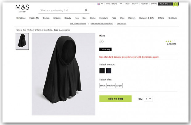 Der britische Einzelhandelskonzern Marks & Spencer steht im Zentrum der Kontroverse, nachdem er eine Schuluniformlinie mit einem Hijab für junge muslimische Mädchen in seinem Online-Shop zum Kauf angeboten hat. Grund hierfür sei, so Marks & Spencer, eine gestiegene Nachfrage nach dem Produkt.