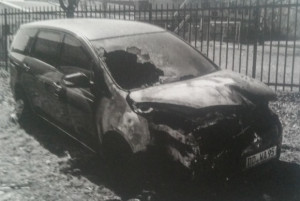 Werner J. Patzelts Auto nachdem es in Dresden abgefackelt worden ist