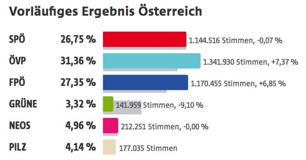 Der ORF zeigt heute dieses vorläufige Wahlergebnis (Screenshot ORF):