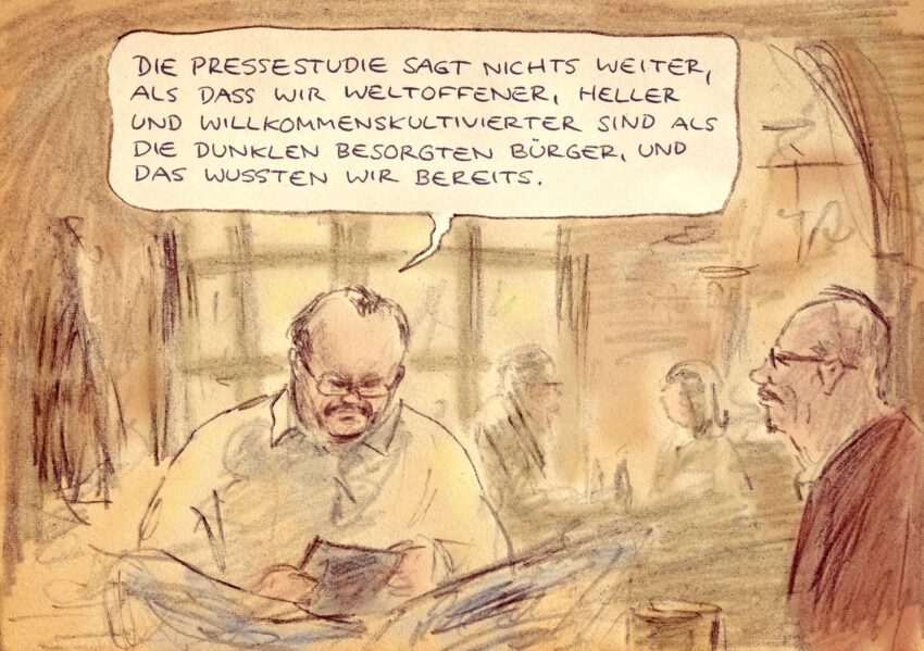 Erstens: Dem deutschen Normalo-Michel ist gar nicht bewusst, in welcher Größenordnung er seine mediale und alltägliche Gehirnwäsche zwangsfinanziert. Er zahlt nämlich Rundfunkbeiträge, die im Volksmund Rundfunkgebühren oder GEZ-Gebühren heißen. Jährlich kommen auf diese Weise rund 8 Milliarden Euro zusammen. 2014 waren es 8,32 Milliarden, 2016 – was Wunder – waren es etwas weniger, nämlich „nur“ 7,98 Milliarden. Damit werden 22 Fernseh-, 67 Radiosender und eine Menge an Online-Plattformen mit insgesamt mehr als 25.000 festen Mitarbeitern finanziert. Dafür bekommt der Michel dann tagtäglich Nachrichten und Bilder, die oft so schön sind, als stammten sie aus der Presseabteilung des Kanzleramtes. Zum Beispiel Bilder von flüchtenden Frauen und Kindern, weitaus weniger von der Tatsache, dass diese Menschen nur zehn Prozent der Flüchtlinge ausmachen. Mit den politisch in hohem Maße korrekten Talkshows wollen wir gar nicht erst anfangen, etwa von der IS-Propaganda einer konvertierten Nikab-Trägerin bei Anne Will oder von der Nationalallergikerin Jutta Ditfurth bei Sandra Maischberger. Sparen kann man sich das allenfalls, wenn man die Kiste gar nicht erst einschaltet; an den monatlich üblichen 17,50 Euro ändern das nichts. Die müssen bezahlt werden, ob der Bildschirm flimmert oder nicht. Nutznießer sind mittlerweile sogar private Verlage. Die Süddeutsche etwa hat sich mit dem NDR und dem WDR zu einem Rechercheverbund (besser. Recherchekartell) zusammengeschlossen und ist damit mehr oder weniger indirekt ebenfalls Nutznießer von Rundfunkzwangsgebühren.