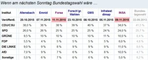 Dass wirklich repräsentative Stichproben befragt werden, und zwar in Absenz vorgegebener ‚Abwärtstrends‘ unliebsamer Störparteien.