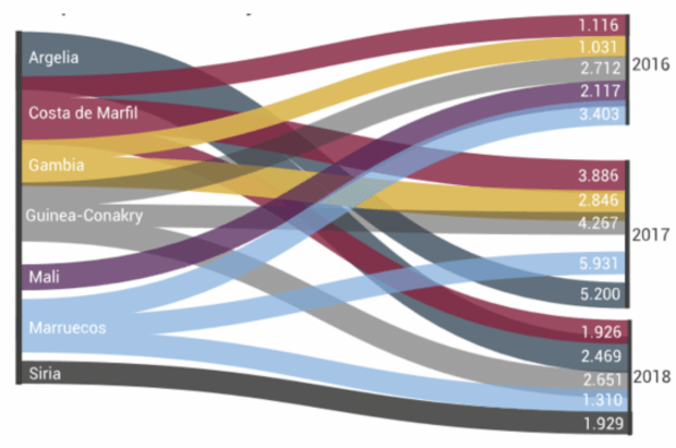 Herkunftsländer der irregulären Einwanderer nach Spanien 2016-2018