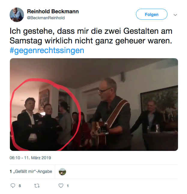 Auf einer Twitter-Seite, von der nicht restlos geklärt ist, ob sie tatsächlich Beckmann gehört oder mit sehr viel Aufwand gefakt ist, zeigte sich, dass sehr viele aus dem wohlmeinenden Lager sein #Singengegenrechts doch nicht so dufte und schnafte fanden wie er selbst. Sie fanden die Aktion, wie man im Englischen sagt, half-assed, but not half-assed enough, auch wenn die meisten das schlechter formulierten.