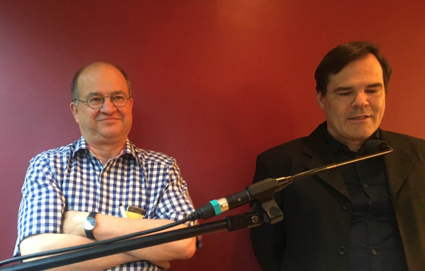 Zwei Dresdner auf kleinstem Raum: am Montagabend nach dem EU-Wahl-Sonntag zwängten sich Autor Uwe Tellkamp, 50, („Der Turm) und Vize-Unionsfraktionschef Arnold Vaatz, 63, hinter ihre Mikrofone im Veranstaltungsraum des Buchhauses Loschwitz am Blauen Wunder. Sie mussten sich deshalb mit so wenig Platz begnügen, weil die Inhaberin des Buchhauses Susanne Dagen die Stuhlreihen schon so dicht wie möglich gestellt hatte, um möglichst viele Besucher unterzubringen. Die Veranstaltung war seit Wochen ausverkauft.