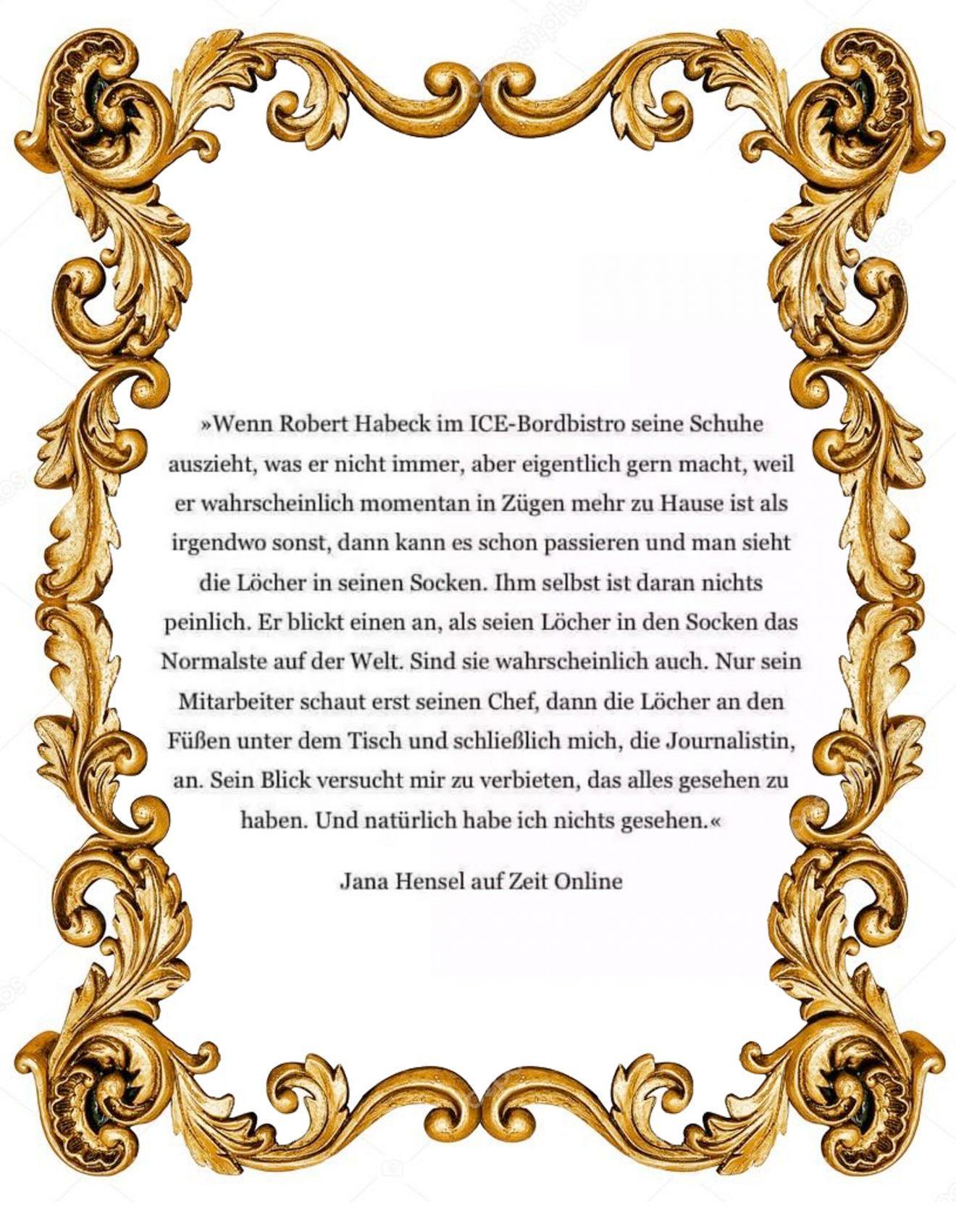 Leider erfahren wir von Frau Hensel nicht mehr, wonach Robert Habecks Zehen schmecken. Ab diesem Punkt setzt sich die journalistische Diskretion nämlich endgültig durch.