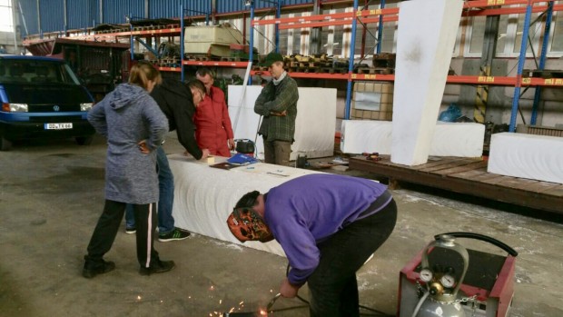 Angetrieben von der Erfahrung, schon einmal erfolgreich Widerstand geleistet zu haben, bauten und bastelten sie das Werk zusammen, mit dem sie sich öffentlich wieder einmischen wollen. Zum Glück sind unter den Selbstständigen auch Bauunternehmer, die sich mit etwas Größerem schon auskannten. Groß sollte das Kunstwerk ja von Anfang an sein. Sonst hätten sie auch einfach eine Unterschriftenaktion starten können, um auf ihr Anliegen aufmerksam zu machen.
