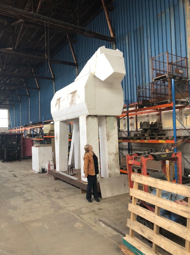 Das Pferd, oder ein Duplikat, sollte auf Wanderschaft gehen und immer an dem Ort positioniert werden, an dem sich Frau Merkel gerade aufhält.