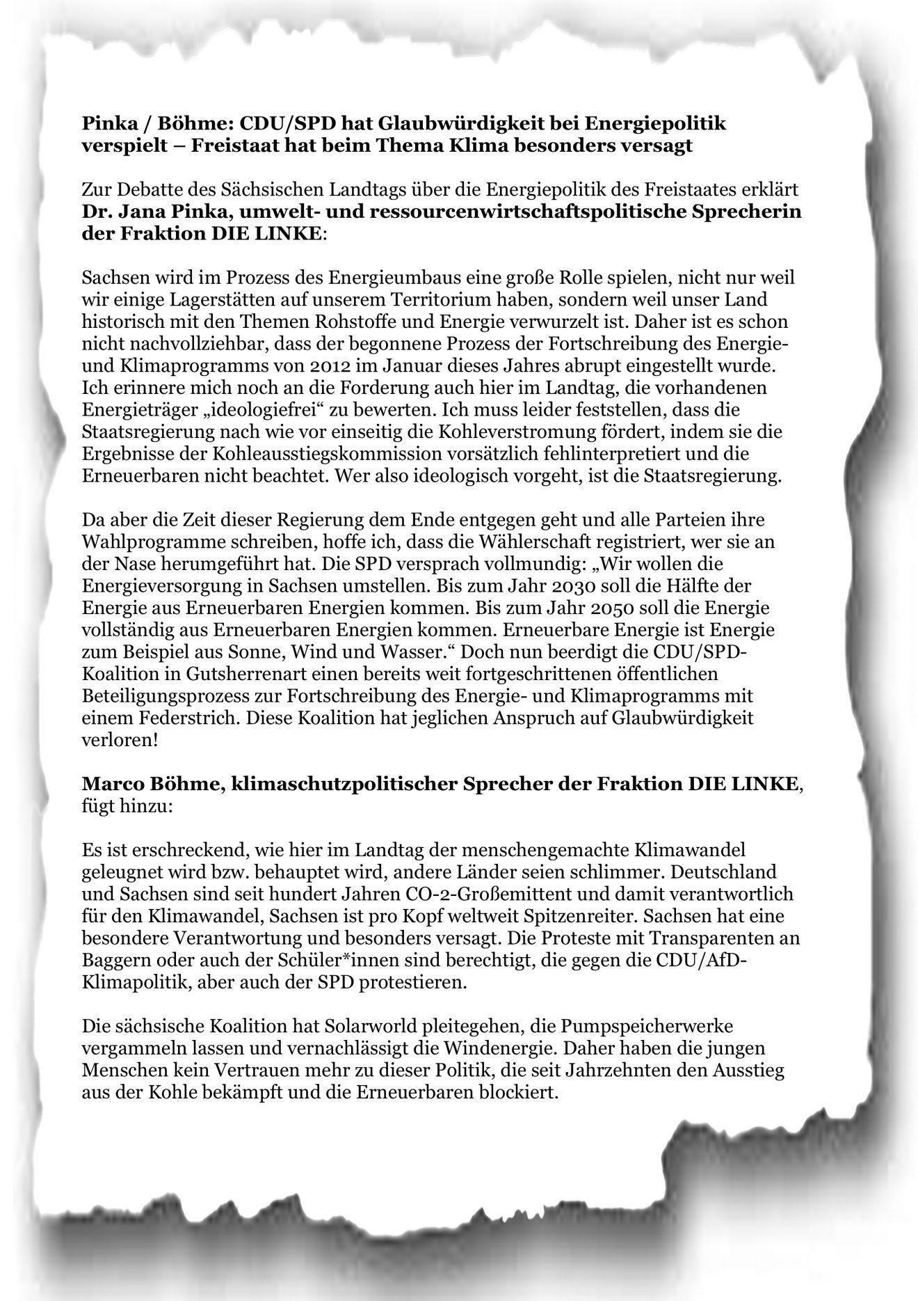 Über den Klimasünder Sachsen verbreitete der „klimaschutzpolitische Sprecher“ der Links-Fraktion Marco Böhme in einer Pressemitteilung: