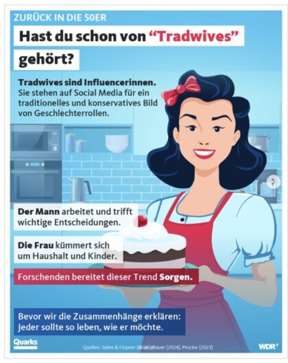 • Der öffentlich-rechtliche Rundfunk macht, dank Milliarden an Zwangsgebühren, weiter grün-linke Propaganda – zum Beispiel verbreitet er, dass nicht berufstätige Hausfrauen zu „rechten Ideologien“ gehören:
