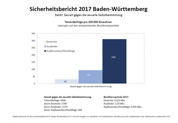 Bei Straftaten gegen die sexuelle Selbstbestimmung waren Asylbewerber/“Flüchtlinge“ in Baden-Württemberg über 10 Mal krimineller als Deutsche: