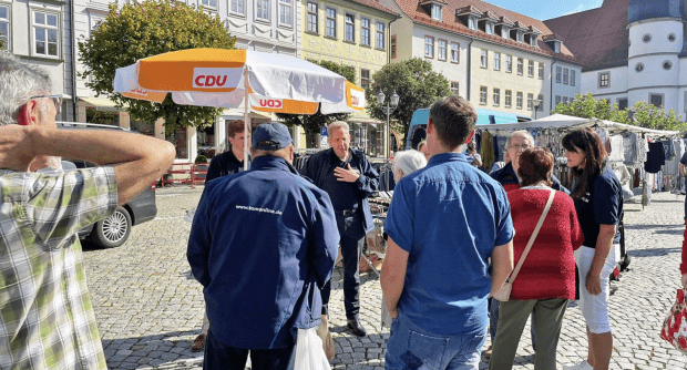 „Wir kriegen es den Menschen einfach nicht mehr vermittelt“, sagt Ralf Liebaug, CDU-Vorsitzender im Kreisverband Schmalkalden-Meiningen. Er fügt hinzu: „Und ich kanns ihnen nicht verdenken.“ Wenn die Parteispitze in Berlin etwas entscheide, mache sie sich keine Gedanken darüber, was das hier für die Basis bedeutet. „Wir gehen dann mit Mann und Maus unter“.