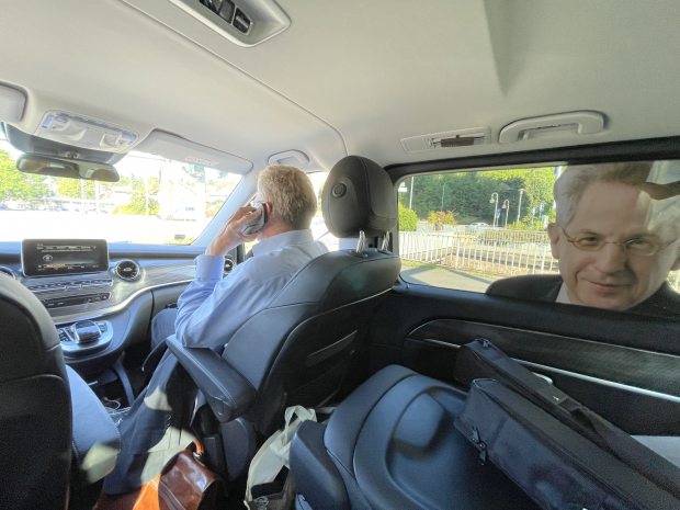 Maaßen im Wahlkampfbus im Wahlkampfstress