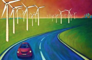 Ganz unten werden die Winddenkmäler noch in Stufen von grün nach himmelsgrau lackiert. (Damit diese das Landschaftsbild nicht stören (oder so)