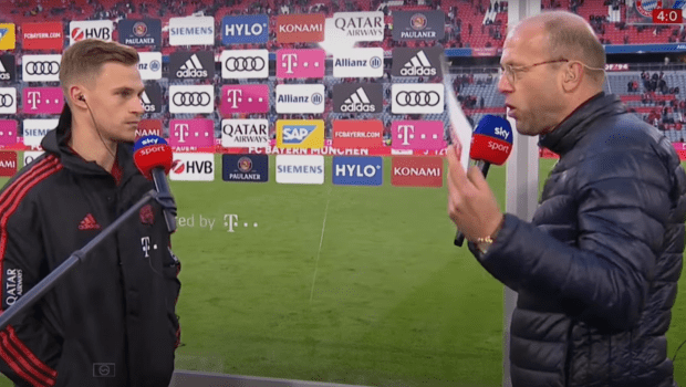 An diesem Wochenende jedoch verblüffte er mich nach dem Spiel des FC Bayern München mit seinen Fragen an den Spieler Joshua Kimmich. Da war keine journalistische Distanz mehr und er zeigte auch nicht das sonst übliche ölige Skyreportergehabe.
