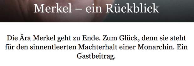 Und tatsächlich geht Streeck zur Sache. Bereits der erste Satz seines Beitrages hat es in sich: „Die Ära Merkel geht zu Ende, und das ist auch gut so. Allmählich erwachen die deutsche Politik und ihre Öffentlichkeit aus ihrer postdemokratischen Narkose.“ Streeck wirft Merkel vor, ihre immer neuen Kehrtwendungen in Richtung der linken Mitte ausschließlich auf „Machterwerb und -erhalt“ ausgerichtet zu haben.