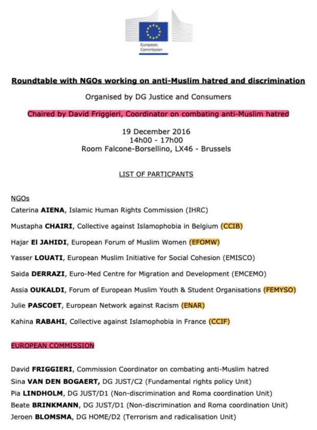 2016 veranstaltete die Europäische Kommission einen „runden Tisch“ mit Muslimbrüder-nahen Organisationen