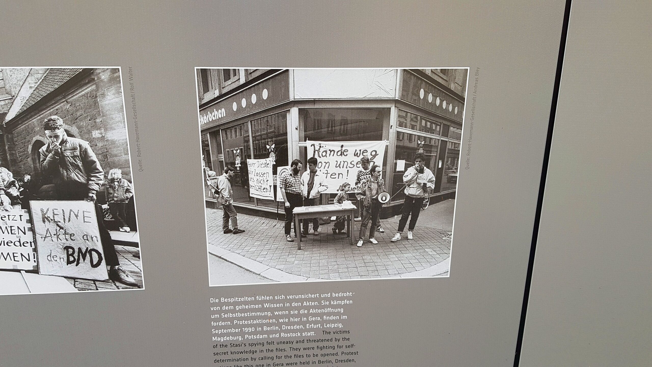 „Weltweit einmalige Behörde“ – Fotos von Protesten gegen die Überführung der Stasi-Akten ins Bundesarchiv 1990 (Open-Air-Ausstellung vor der früheren Stasi-Zentrale in Berlin)